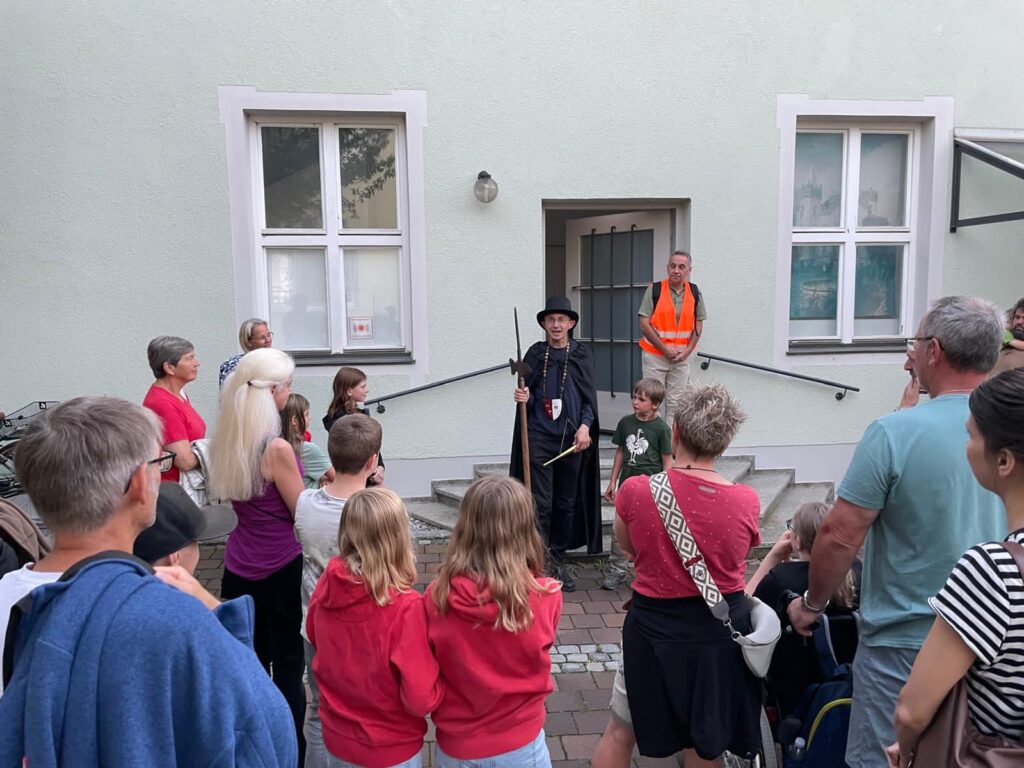 Doch bevor es zum letzten Spruch am Ende kam, erlebten die Kinder mit ihren Eltern eine spannende und abwechslungsreiche Runde durch die Buchloer Altstadt. Begleitet wurden sie von Herbert Wintersohl, dem Vorsitzenden des Heimatvereins, der gemeinsam mit dem Familienstützpunkt die beliebten Führungen organisiert.